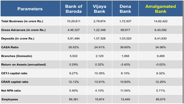 The three banks have strengths of their own, which will help the merged entity. Dena Bank has relatively higher access to low cost current and savings accounts (CASA), Vijaya Bank is profitable and is well capitalized and BoB has extensive and global network, as well as good product offerings.
